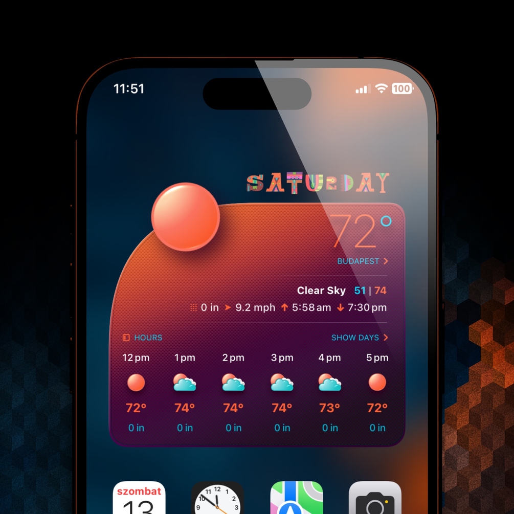 With its custom weather icons reminiscent of classic interface design, it delivers instant weather status, temperature, and wind speed at a glance.