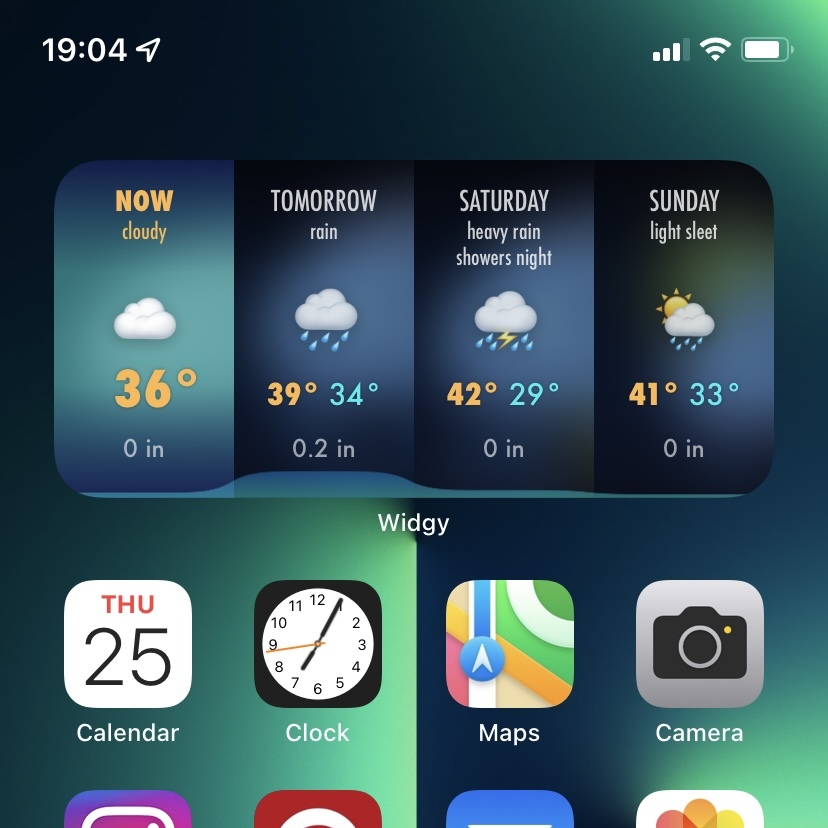 This widget is a gorgeous one. The column backgrounds change according to their weather status so it's a little bit different each time there is a change in the forecast.