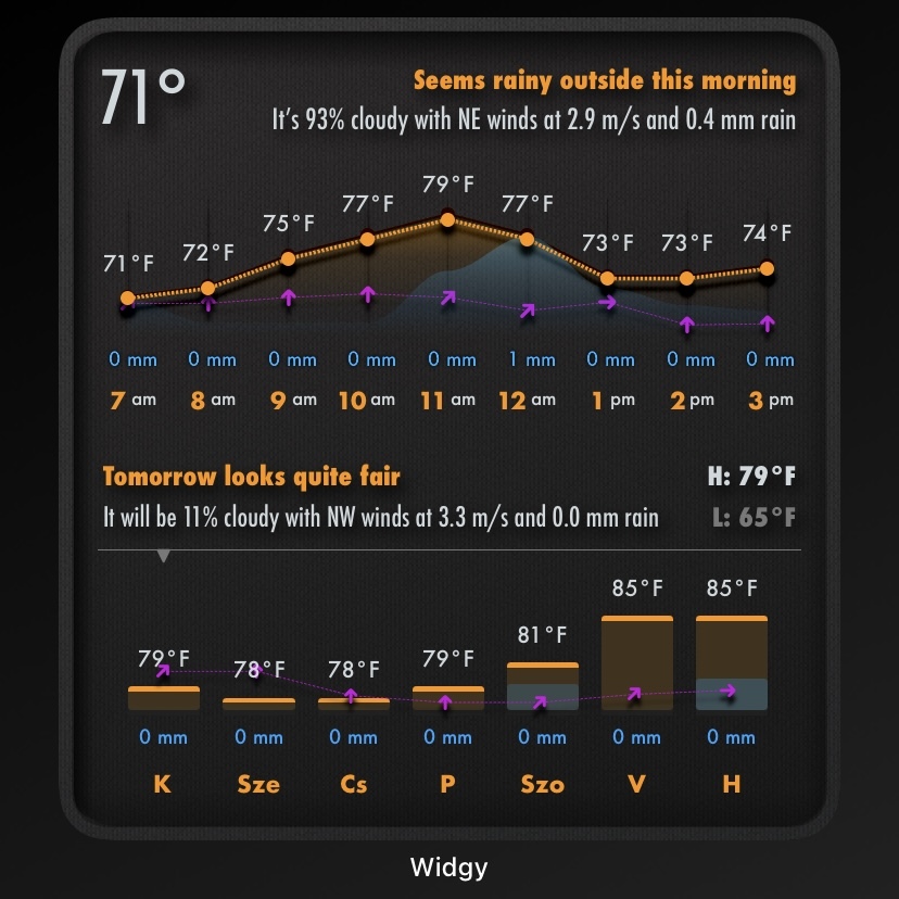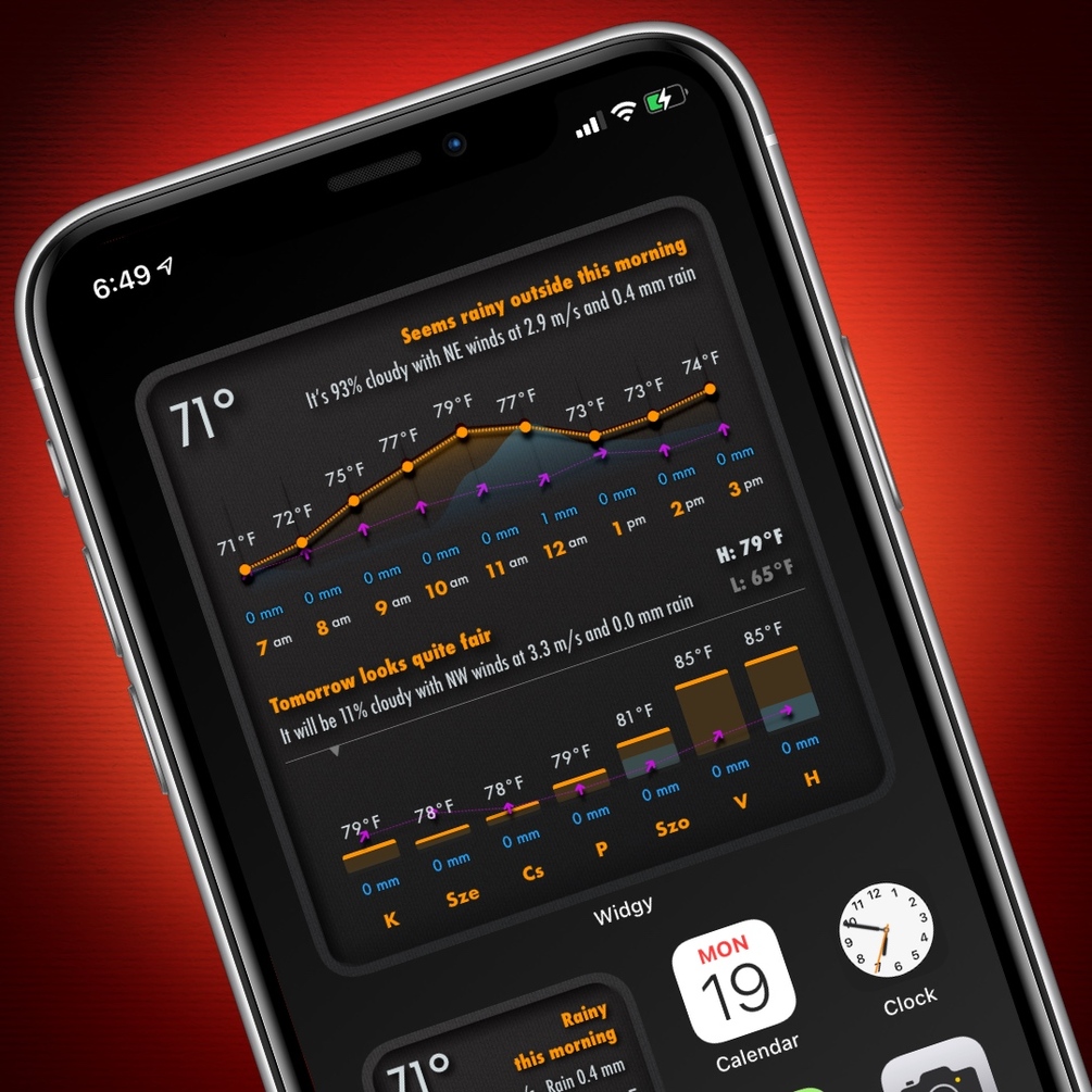 Available in all 3 widget sizes: the large one enhances your experience with a one-week outlook while the small one shows the next 4 days.